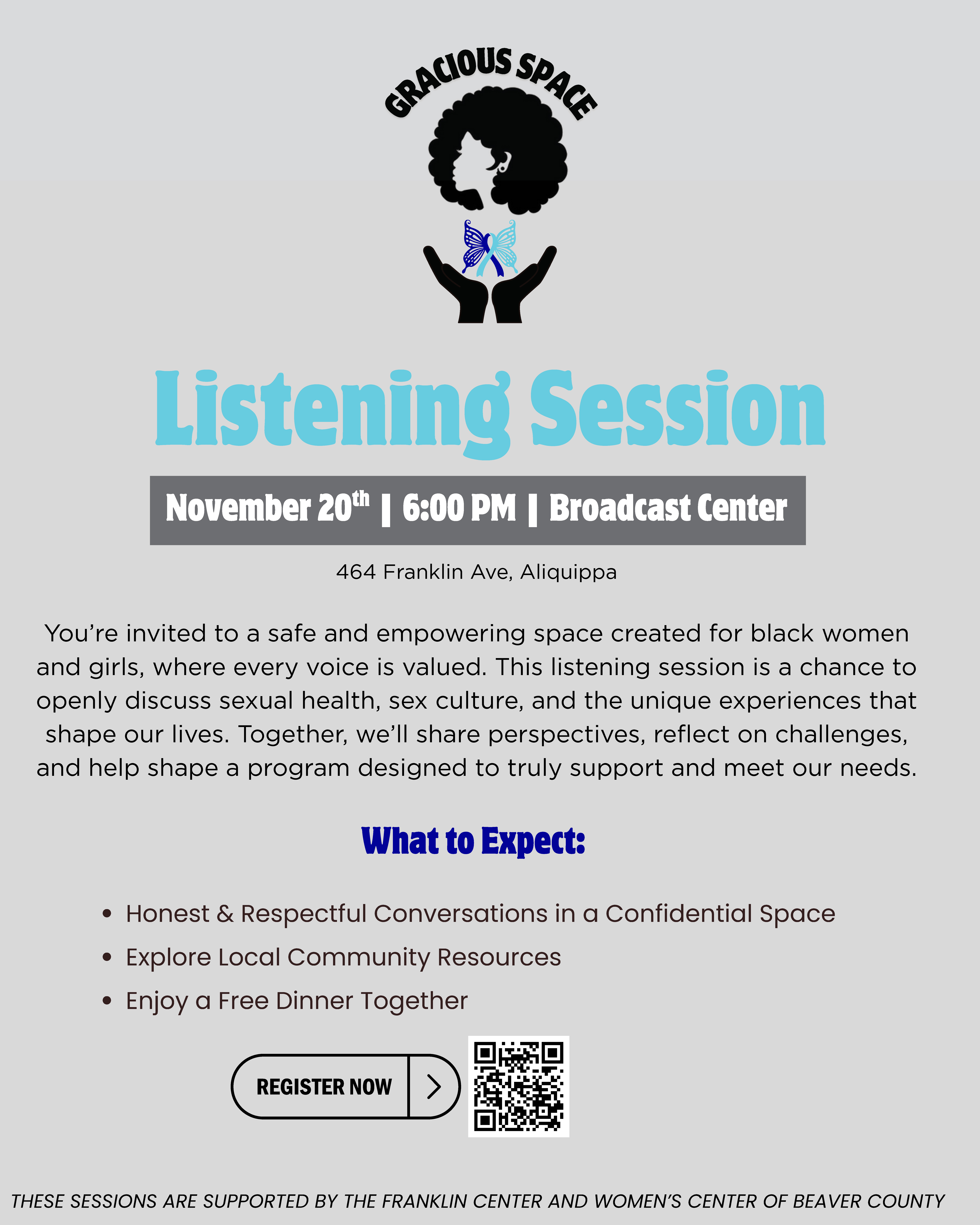These sessions are supported by The Franklin Center & Women’s Center of Beaver County.