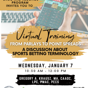 FREE Virtual Training: From Parlays to Point Spreads Beaver County Behavioral Health & Drug & Alcohol Program invites you to register for a FREE virtual training: "From Parlays to Point Spreads: A Discussion About Sports Betting Terminology." 07 Jan 10:30 am - 12:00 pm